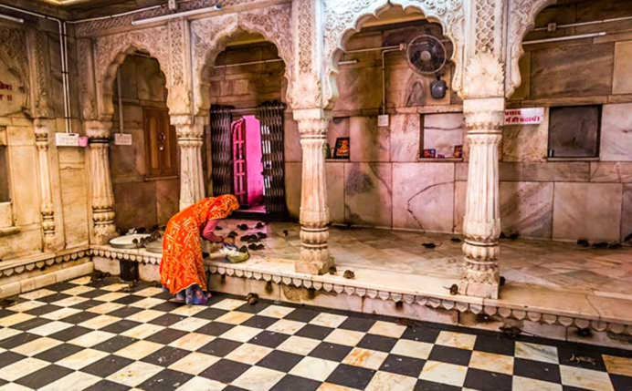 Karni Mata Temple วัดหนู วัดนี้สร้างขึ้นในช่วงศตวรรษที่ 15 สร้างขึ้นเพื่ออุทิศให้แก่หนูโดยชาวฮินดูที่มีความเชื่อว่า เป็นลูกหลานของเทพธิดา Karni Mata ที่เป็นร่างอวตารของเทพธิดา Durga เทพธิดาแห่งพลังและชันชนะ ซึ่งเป็นสถานที่ศักดิ์สิทธิ์มากของศาสนาฮินดู ผู้ที่ศรัทธาจะนำอาหาร นม มาเลี้ยงหนู ซึ่งมีจำนวนเป็นหมื่นตัว