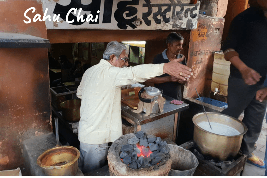 ร้านแรกชื่อร้านSahuในPink City ตรงChaura Rasta ร้านเล็กๆซ่อนตัวอยู่ หากไม่รู้จักจะหายากสักหน่อยเพราะมีคนรุมเต็มหน้าร้านตลอดเวลา และต้องรอคิวประมาณนึง แต่หากได้ชิมแล้วจะต้องติดใจและมีความอยากๆๆๆดื่มอีก คุณลุงคนขายใมีวิธีต้มที่แสนจะมีกระบวนการ และมีการรมควันหม้อต้มด้วยการโยนน้ำตาลลงไปบนเตาถ่าน จะเกิดควันขโมงด้วย ร้านเปิดตั้งแต่ 8โมงเช้าถึง5ทุ่ม